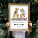 Välkommen dina gäster med denna roliga dinosaurie-tema vigselplakatskylt med roliga T-Rex-brud och -brudgumme i en vacker förhistorisk äng med vilda blommor. Om du och din partner älskar dinosaurier är detta det perfekta sättet att tillföra lite roarig dino-kärlek på er speciella dag. Unika Tyrannosaurus rex-illustrationer och färgrika akvarell- vilda blommor i blå rosa lila gul orange och gröna nyanser. Lättanvända mallar med modernt fantasifull typografi stil. Originellt konstverk av konstnären Catherine Sweetman