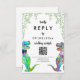 Dinosaur Temed online QR Code-webbplatssvarskort med rolig dinosauribrud och triom med vattenfärgseucalyptus foliage för att ge förhistorisk Jurassic glädje till din bröllopsdag. Modern visuell typografi med enkel att anpassa mallar så att du kan lägga till QR-kod och webbläsarens webben adress och användbara gästinstruktioner för bröllop. Unik funky Psychedelic T-Rex-brud och -trim med botaniskt grönt originalverk av konstnären Catherine Sweetman Ideal för bröllopsdagens mottagning eller repetitionsmiddag. Matchande bröllop-svit innehåller allt du behöver på resan roligt bröllop