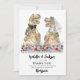 Ett lustigt dinosauritema bröllop Tack för att bröllop gäster är roarma med den här roliga romerbruden och bröllop tack för ditt kort. Roligt T-Rex-brud och trimning i en romantisk ängsskugga för vilda blommor och modern visuell typografi med enkla till använda mallar. Originalteckningar och löv av konstnären Catherine Sweetman
