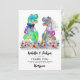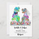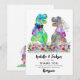 Ett lustigt dinosauritema bröllop Tack till gästerna för att de är roarma med den här roligten färgstarka vilda blomman och dino T-Rex-bruden och groom bröllop-tack. Roligt Tyrannosaurus Rex-brud och trimning i en romantisk ängsskugga för vilda blommor och modern vismisk typografi med enkla till använda mallar. Original, förhistorisk dino- och sommarkonst av konstnären Catherine Sweetman