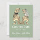 Funny Dinosaur Sage Green Wedding Save the Date | T-Rex Bride & Groom Watercolor Design