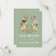 This save the date showcases original watercolor artwork by artist Catherine Sweetman, with hand-painted T-Rex bride and groom illustrations paired with clean, modern typography on a stylish sage green background for a stylish yet lighthearted look.