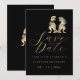 Perfect for fun-loving couples, this unique design showcases charming watercolor illustrations of a T-Rex bride and groom on a black background paired with stylish modern typography script. Easily personalize with your names and wedding date to create a memorable first impression for your big day.