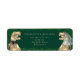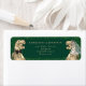 Roligt mörk grönt Dinosaur Bröllop Return-adressetikett T-Rex Bride & Groom med botaniskt eucalyptus Greenery Lägg till en liten förhistorisk charm till din bröllop-post med den roliga dinosauurtemerade returadressetiketten, med en vit vattenfärgsillustration av en T-Rex-brid och -groom omgiven av mjuk eucalyptus-lök, vattenbockor, vattenfärgsröta. Kvävegrej. Ett perfekt sätt att binda ihop ditt Jurassic-temed bröllop-svit, den här etiketten ger dig personlighet, roligt och elegans till dina kuvert. Designad med en snyggt med modern elegant-typografi, innehåller den här etiketten lättanpassade mallar för namn och returadress som passar perfekt för bröllopsinbjudningar, repetitionsmiddagar, inbjudan, tackkort eller dags att skriva papper. Oavsett om du planerar en dinokemisk bröllop, en utomhusceremoni för destinationsbröllop eller bara kärlek-dinosaurier, lägger den här unika returadressetiketten till en roligt, sammanhängande beröring till all din korrespondens från dino bröllop. Den här etiketten är en del av en fullt som matchar dinosaur-bröllop-svit, som innehåller inbjudningar, skyltar, bordsnummer, menyer med mera. Den har exklusiv originalteckning av dinosaur-teckningar av konstnären Catherine Sweetman.