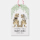 Tack för att du föredrar taggar med roligt dinosauribrud, grum och eucalyptus foliage. Enkel att anpassa med bruden och rummen namn, bröllop-datumet i det moderna typografiskriptet. Roligt T-Rex-illustrationer med brun nyans och med vattenfärg botaniskt grönt i nyanser av grönt. Unikt originalverk av konstnären Catherine Sweetman