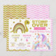 The playful headline “Stomp Over for a Magical Birthday Party” perfectly blends dinosaur adventure with unicorn magic, making this invitation both fun and heart-warming. Soft pastel colors, gold accents, and charming illustrations create a beautiful and balanced look that kids and parents will love.