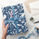 Blått- och vitDinosaurben som upprepar mönster! Dinosaurs som presenteras i denna design, inkluderar: Tyrannosaurus Rex, Allosaurus, Parasaurolophus, Triceratops, Brachiosaurus, Spinosaurus och Velociraptor.