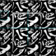 Svartvita Dinosaurben som upprepar mönster! Dinosaurs som presenteras i denna design, inkluderar: Tyrannosaurus Rex, Allosaurus, Parasaurolophus, Triceratops, Brachiosaurus, Spinosaurus och Velociraptor.