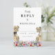 Lägg till en lekfull och oförglömlig touch till din bröllopsförberedelse med detta dinosaurie-tema bröllops-RSVP-svar inklusionskort. Med en T-Rex-brud och -brudgum sett i en livfull förhistorisk boho-vildblomsteräng ger detta kort en unik och fantasifull känsla till din speciella dag. Den moderna typografin i kalligrafistil är både rolig och lätt att anpassa, vilket gör det enkelt att matcha din bröllopsstil. Designad av den begåvade Catherine Sweetman visar akvarellkonsten en charmig blandning av sommarblommor och dino-inspirerad kärlek. Perfekt för din bröllopsmottagning eller repetitionmiddag är detta RSVP-kort en del av en komplett brölloppssvit som innehåller allt du behöver för att göra din bröll