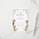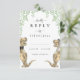 Om du och din fästmö älskar dinosaurier, varför inte då fira er kärlek på ett unikt roligt och fantasifullt sätt med detta botaniska T-Rex brud- och brudgum-dinosaurie bröllopsinbjudan svarskort? Med handmålad akvarell-eukalyptusflora kombinerar denna design naturens skönhet med en lekfull dinosaurie-vridning. Den ursprungliga konstnärliga gestaltningen av konstnären Catherine Sweetman ger de bedårande dinosauriebruden och -brudgummen liv, och fångar perfekt andan på er speciella dag. Den eleganta typsnittsstilen tillför en sofistikerad touch, vilket gör detta kort till det perfekta sättet för era gäster att svara. Det är ett charmerande och minnesvärt tillägg till er bröllopsp