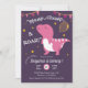 Gör dig redo för en dino-mite-firande med denna söta dinosaurie-tema födelsedagsinbjudan! Med en söt rosa T-Rex som håller i en ballong mot en stjärnklar natthimmel, är denna moderna och lekfulla design perfekt för din lilla enes första födelsedagsfest. Framsidan av inbjudan visar ett roligt "Stomp, Chomp & Roar!"-meddelande, medan baksidan har ett enkelt stjärnmönster för en ren och elegant finish. Med livfulla färger och fantasifulla detaljer sätter den tonen för ett roligt förhistoriskt äventyr. Denna dinosaurie-födelsedagsinbjudan är perfekt för en flickas födelsedag men kan anpassas för alla dino-älskande barn. Anpassa den med dina festdetaljer och gör din lilla dino's stora dag extra speciell