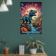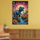 Viktiga och livfulla dinosaurier som verkar vara en blandning av fantasi och förhistorisk charm. Dinosauren har ett långt nacke och stort huvud, med ett vidsynt uttryck med fängslande, överdimensionerat ögon att ge är ett sött och nyfiket utseende. Dess hud är försedd med intrikat mönster som liknar färgstarka, snurrande former och prickar, nästan som om dess kropp är målad med ett kalejdoskop av struktur i blues, gröntar, gulter och lila. Den sjudande bakgrunden, med dess snurrande planeter för himmel och abstrakt, ge intryck av ett annat världslandskap, som antyder att dinosaurien finns i en surrealistisk, fantasirik värld. Den ljusa, överdrivna färg och lekfulla karaktären hos ge är en vänlig, animerad karaktär som är perfekt för en magisk eller drömliknande inställning. Denna dinosaurie skulle kunna tillhöra en tänkt art från en kosmisk sfär, där flora och fauna utvecklas i vibranta, psykoproduktiva ekosystem, där förhistoriskt liv blandas med en rymdåldersskevning. Dess gärning exuderar oskuld och , som om den för första gången utforskar sitt fantastiska universum.