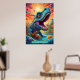 Viktiga och livfulla dinosaurier som verkar vara en blandning av fantasi och förhistorisk charm. Dinosauren har ett långt nacke och stort huvud, med ett vidsynt uttryck med fängslande, överdimensionerat ögon att ge är ett sött och nyfiket utseende. Dess hud är försedd med intrikat mönster som liknar färgstarka, snurrande former och prickar, nästan som om dess kropp är målad med ett kalejdoskop av struktur i blues, gröntar, gulter och lila. Den sjudande bakgrunden, med dess snurrande planeter för himmel och abstrakt, ge intryck av ett annat världslandskap, som antyder att dinosaurien finns i en surrealistisk, fantasirik värld. Den ljusa, överdrivna färg och lekfulla karaktären hos ge är en vänlig, animerad karaktär som är perfekt för en magisk eller drömliknande inställning. Denna dinosaurie skulle kunna tillhöra en tänkt art från en kosmisk sfär, där flora och fauna utvecklas i vibranta, psykoproduktiva ekosystem, där förhistoriskt liv blandas med en rymdåldersskevning. Dess gärning exuderar oskuld och , som om den för första gången utforskar sitt fantastiska universum.
