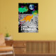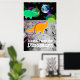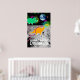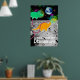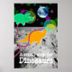 Tecknad Dinosaurier på Måne Poster Skriv ut. Två söta, lilla astronaut dinosaurier-grönt Triceratops och orange Diplodocus i rymden vid måne med färg-stjärnor och en vacker, blå jordjord poster utskrift med anpassadet "Ett litet steg för dinosaurier". Den här färgstarka dinosaurievännerna i rymden poster helt anpassade, lägg till texten och bilder! En vacker gåva till den stora lilla tecknaden fläkt!