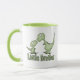 upp Hett Chocolate eller soppa i den här söta muggen med två söta tecknad T-rex-dinosaurier som har text som säger"Little Brother". Har matchande storebror design.