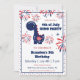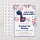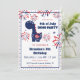 Dinosaurie-inbjudan till pojkfödelsedag eller någon barns självständighetsdagfirande med en patriotisk söt dinosaurie, fyrverkerier och små stjärnor, alla i nationella färger. Anpassa texten enkelt. - Kate Eden Art