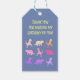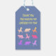 Rosa, gult dinosaurier, blå Barns födelsedag Party-Tack-märkre för presenter. märkre för anpassadets barn, lägg till din bakgrund och text.