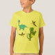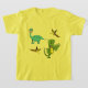 T-Rex, en blå dinosaurie och lycklig Pterodactyls skjorta runt den här färgstarka pojkens t-shirt.