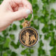 Stora runda, högklassig nyckelkedja i metall med en svart och guld-bild av Dionysus, gud av vin och vin skapar och rituell galenhetare, och satyrerna.