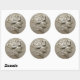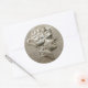 Runddekal med en bild av ett gammalt Thassos-mynt, Greklands silver-mynt (tetradrachm) med huvudet Dionysus genomdränkt med vindruvor och blommor. Se matcha kontur, favör -tagg och figursättning pappert. Se hela samlingen av Toga Sticker i INBJUDAN | Avsnittet Stickers & Labels.