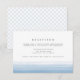 Eleganta vattenfärg bröllopsinbjudan till mottagning med ombre gradient dip dye effekt längst ner i luftig himmelblå. Personalisera med din mottagningsinformation, tidpunkt, lokal och adress i mörk kolgrå block och script typografi. Mottagningskortets baksida har ett subtilt diamantgittermönster i blekblått och vitt. Designad för att samordna med vår Dip Dye bröllopsinbjudan samling i Himmel.
