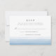 Kort med vattenfärgstryck i elegant har en bröllop OSA med blandad färggradient vid grund i Mjölkblått i himlar. Anpassa till önskat datum för OSA, acceptera och avmarkera text i mörk av grått- och skripttypografi. Svarskorten går tillbaka till en subtil diamantlattice mönster i blek blå och vit. Designad att samordna med vår inbjudan till Dip Dye-bröllopet i Himlar.