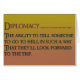 Diplomati - kapaciteten att berätta någon att gå till helvetet in ett sådan långt det ska de look framåtriktat till resan.