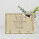 Examen inbjudan med diplom gräns och examenshatt accent på tan texturerad bakgrund och ram. Inbjudningar kommer med kuvert och ditt val av papper.
