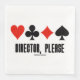 Do you frequently call the director when playing the game of bridge (duplicate bridge)? Showcase your wry bridge attitude with this paper napkin featuring the four card suits along with the saying that is often heard at bridge club games and bridge tournaments: "Director, Please". Make others do a double-take at what goes on during the game of bridge at your next bridge event with this paper napkin!