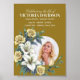 Dela nyheten om en älskads bortgång med värdighet och grace med denna vintageblomsterkrans av ros och lilja på guldbakgrund i Facebook-mall för dödsannonser. Med en snygg, minimalistisk design erbjuder den plats för ett foto, viktig information och ett hjärtligt meddelande.