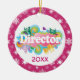 Den härliga rosa prydnaden för snowflakedirektörjul gör en perfekt strumpastuffer för dirigenten, kördirektör, marschmusikbanddirektör eller direktören av en teaterproduktion och har snowflakehelgdagbakgrund med virvlar runt och stjärnadirektörcitationstecken.