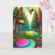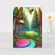 Retro disc golf-bana med Örn som flyger över tallarna Fars dag-kort. Du är den bästa pappa på par! Rolig discgolf-pun.