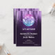 En disco boll belyser dessa inbjudningar från Bachelorette Party Helg. Dina uppgifter i chic vita bokstäver och helg på baksidan.