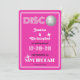 Magenta DISCO med en disco boll Spara datum! En roligt elegant ser ut att transportera oss tillbaka till 1970-talet. Diskola in i konturteckensnitt med en glatt disco boll-bild och fler miniatyrbilder på kortet. Många linjer som anger fronten kompletterar typen. Namnen i ett 70-talsteckensnitt. På baksidan finns en QR-kod för webbplatsen och utrymmet i bröllop för att lägga till ytterligare ett meddelande till dina gäster och ange mer information. All text är personlig åt dig. Den här versionen är i en lila med groovy magenta. Du kan anpassa etikett och färg i Verktyg på Design.