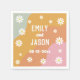 Det här är en eftertryckt bröllop-cocktail-napkin med daisy och en groovy färg-pallett. Välj "Anpassa den här mallen" för alla formuleringar. Om du behöver göra fler ändringar, t.ex. bakgrunden färg, färger och mer, väljer du "anpassa ytterligare" i verktygsfältet.
