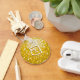 Nyckelkedja med en stiliserad roligt- och funky "disco spegel tile look" som skrivs ut i mönster och det första brev som du väljer i skuggor av gult, guld och vitt. Kan användas som bakgrund för din egen text, bilder och dina idéer. Observera att det här är en tryckt digitalbild, att den inte visar eller innehåller äkta spegel eller glitter.