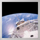 Horisonten av en blå och vit jord utgör bakgrunden för denna vy av lastbukten för Discovery-programmet för rymdfärder, som ses genom fönster på axelcockpit under STS-95-uppdrag. Bilden i nyttolastfältet är rymdfartmodulen och är delvis skymd utanför den, den översta delen av det stuvade Spartan 201-2005 samt en del av tunneln som kopplade orbitern till skjortan-sleeven av Spacehab. I sitt stuvade läge i högernas centrum i ram är det kanadensiskt byggt fjärrstyrningssystemet (RMS) arm.