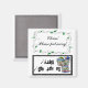 Dishtvättmagnet som har "Ren! Ut med er, och använda inte! Smutsigt!" Den rena sidan har en vind runt den, och den smutsiga sidan har en gräns runt den och en skorsten med smutsiga diskar.