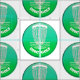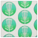 En illustration av en grönt Frisbee och en skivburk med golfbage. En design för skivgolferer.