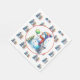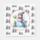 Diskgolftemat pappra servetter från party vid jul.. Diffeltematerad konst. Cute vattencolor tecknad snögubbe i Santa hat bredvid en skiva golf basket i snö vid Julgran.