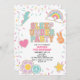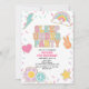 Sov under Party! Inbjudan till födelsedagskalender med regnbåge, hjärta och fredstecken.
