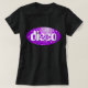 T-tröja med en roligt och ett skraj stylised "diskospegeln utskrivavet mönster belägger med tegel för look" skuggar in av lilor och vit och "diskot" som är skriftligt i en retro stiltext. Kan användas som en bakgrund för dina egna text, bilder och idéer. Tillgängliga sammanlagt stilalternativ. Please noterar detta är en utskrivaven digital konst avbildar, gör den inte sken eller att innehålla verkliga speglar eller att blänka.