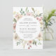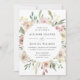 Bröllopbjudanden till blommigten i elegant med dina bröllop-uppgifter omgivna av vattenfärgen ro och löv i muterade nyanser av rosa, elfenben, mauve och grönt. Den omvända sidan visningar en solid ljus rosa bakgrund. Designad att samordna med vår insamling av subtle Blooms bröllop.