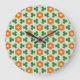 Diskret irländsk Orange och Grönt Geometric Shamro Stor Klocka