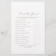 Detta diskreta roséguldfärgade Hitta gästen bröllopsfestspel är perfekt för en modern bröllopsfest. Den romantiska minimalistiska designen har vacker och elegant dammig roséfärgad typografi på en vit bakgrund med ett rent och enkelt utseende. Anpassa kortet med namnen på bruden och brudgummen och bröllopsdatum. Du kan anpassa spel frågorna genom att klicka på "anpassa"-knappen.
