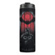 Batman-illustration framför ett rött fönster med texten "Jag är skuggorna".