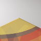 Upplösning av tekonst. Upplösning är en abstrakt utformning som skapas av Vexenwraith och består av rött, orange, oliv- och grått-cirklar och rektanglar.