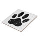 Cartoon dog pawprint in black. Custom square ceramic tile with grunge, distressed effect. Unique gift idea.