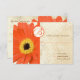 Orange Distressed Damask Gerber Daisy Bröllopsinbjudan och Svarskort -