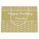 Säg "Grattis på födelsedagen" med det mångsidiga temat guld och vitt party som är perfekt för alla åldrar, från småbarn till hundraåringar. Det är lämpligt för pojkar, flickor, manar, kvinnor, och särskilt för dem som firar milstolpe-födelsedagar. Den enkla grafikdesignen har ditt åldersnummer upprepat i ett sammanhängande, sömlöst mönster i bakgrunden, medan ord "Grattis på födelsedagen" och namn skrivs ut på framsidan. Om du vill anpassa designen användor du den medföljande textmallen för att lägga till meddelande, händelse, namn, inledande eller monogram. Dessa väskor är ett underbart sätt att lägga till en personlig beröring när det är ge en speciell gåva till vänner eller familj. Den mångsidiga utformningen gör den lämplig för tillfällen, oavsett om det är ett personligt firande eller ett affärsevenemang, där du behöver visning ett nummer från 0 till 999. Ändra bara texten så att den matchar händelsens nummer.